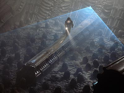 goopy horror of the extra-terrestrial lair where aliens and eggs lie waiting. Those nerve-rending H.R. Giger-created