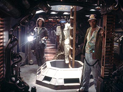 Ripley (Sigourney Weaver), Parker (Yaphet Kotto) and Brett (Harry Dean Stanton) search for a deadly